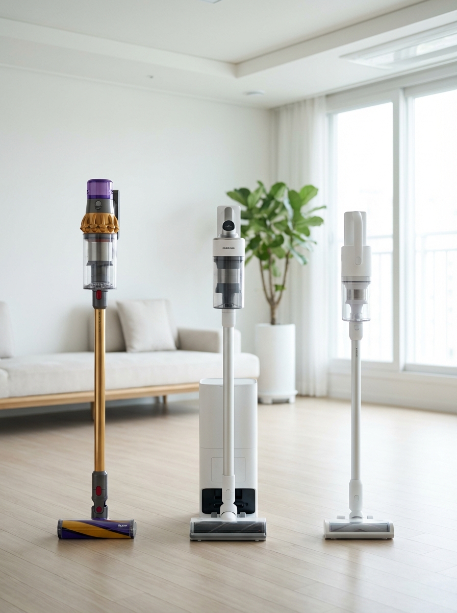 - 예산이 허락한다면 삼성 비스포크 제트 AI 400W의 클린 스테이션 + 교체형 배터리 조합이 현존 최강 편의성. 65만 원대라면 다이슨 V12의 레이저 먼지감지가 '청소 습관'을 바꿔준다.