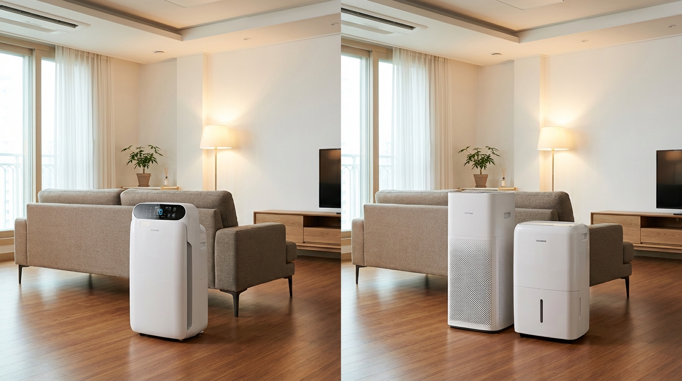 공기청정기와 제습기를 따로 배치할 때 최적 위치가 다르다.