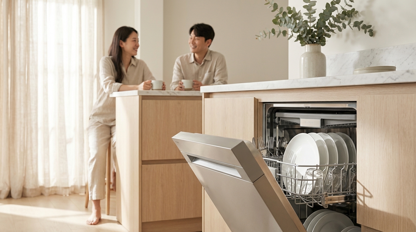 LG전자가 식기세척기 사용자 2,400여 명을 대상으로 진행한 조사에서, 80%가 '없던 시절로 돌아가고 싶지 않다'고 답했다. 2024년 기준 맞벌이 가구 비중은 48%. 부부 두 쌍 중 한 쌍은 퇴근 후 설거지 전쟁을 벌이고 있다는 뜻이다.