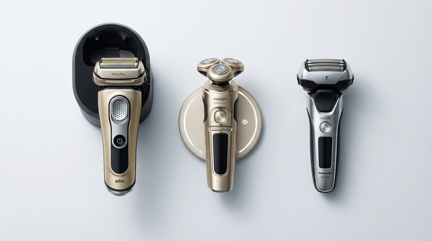 - 프리미엄은 브라운 시리즈9 PRO+, 민감 피부는 필립스, 절삭력 최강은 파나소닉.