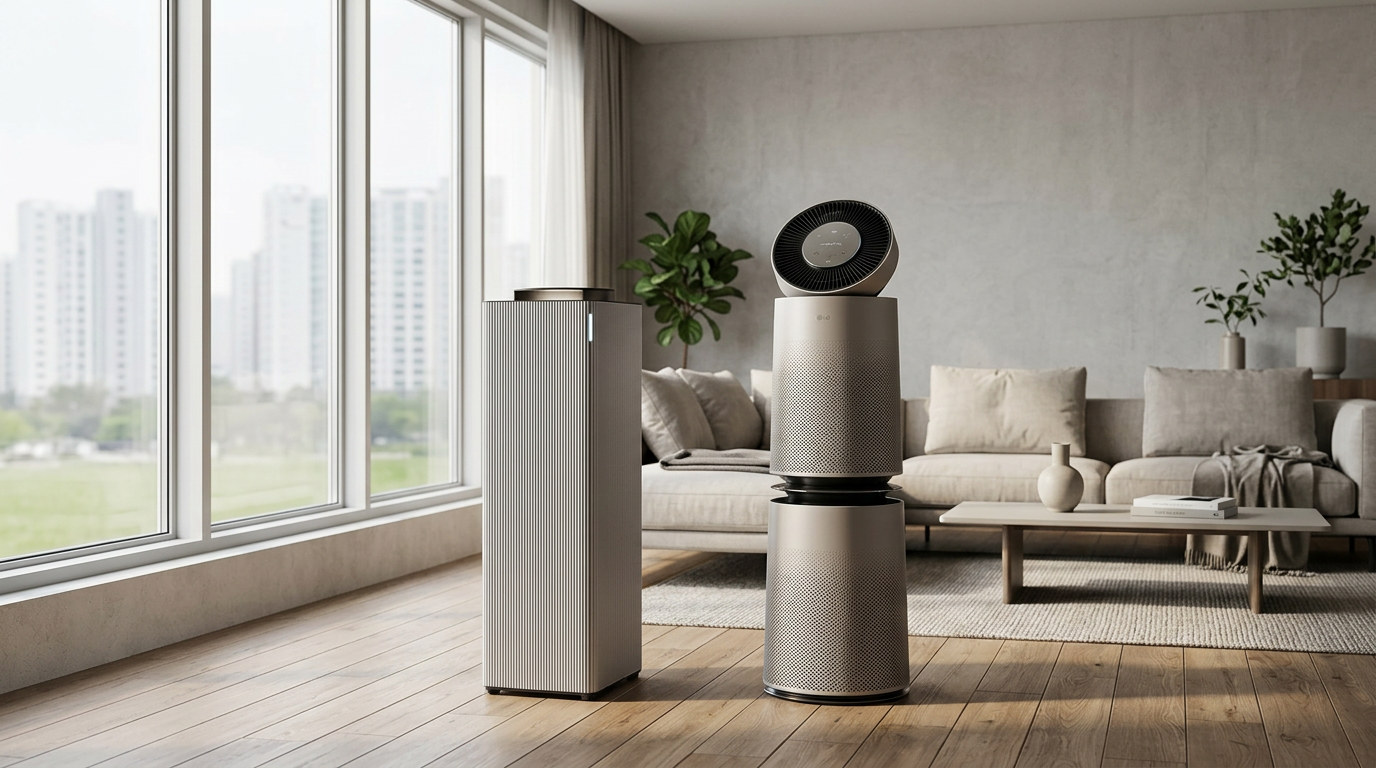 현재 한국 프리미엄 공기청정기 시장은 사실상 양강 구도다. 삼성 비스포크 큐브 Air 인피니트 라인, LG 퓨리케어 AI 오브제컬렉션 360. 둘 다 "AI가 알아서 관리한다"고 하는데, 실제로 들여다보면 접근 자체가 다르다.