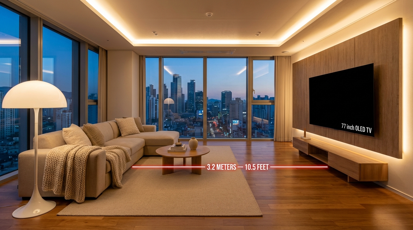 실전 조언: 계산상 적정 크기가 나왔다면, 예산이 허락하는 한 한 단계 위 사이즈를 선택하세요. 55인치가 적정이면 65인치를, 65인치가 적정이면 75인치를 추천합니다.